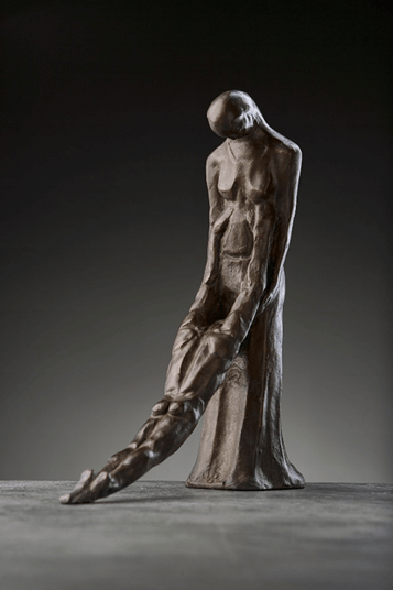 The reason behind this is that the sculptor left Europe, which was becoming anti-Jewish, in 1937 for South Africa. He left his own mother behind and, sadly, she perished in the Holocaust. This sculpture is about Herman Wald portraying himself as the prodigal son returning to his mother, expressing his survivor’s guilt for leaving his mother behind. The prodigal son, bent in an upward arch, shows how everything from his past, through his feet, his naked scarred body, all lead back to his mother. The soles of his feet are turned towards us, the viewer, inviting us into his pain. The mother figure bends over him, with arms hanging helplessly by her side. She wants to support him, but she is no longer there…